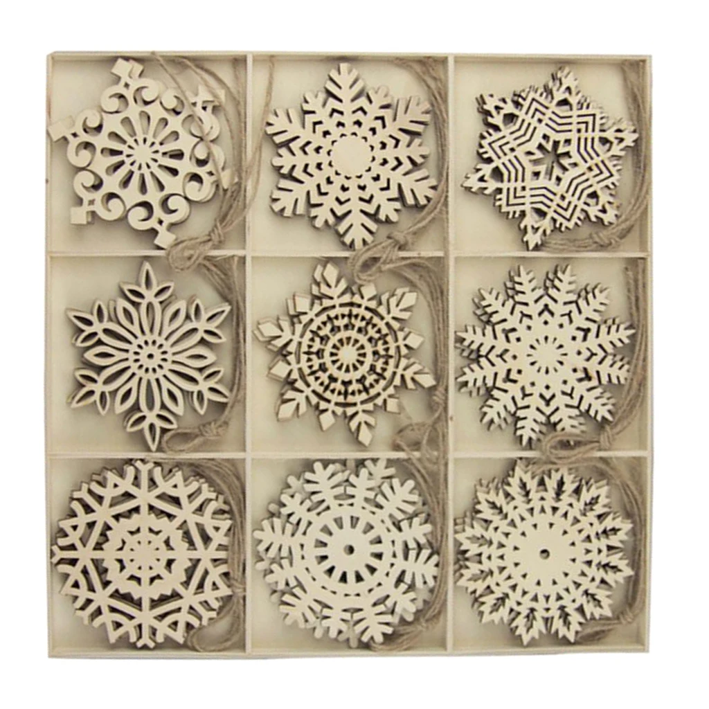 Набор из 27 деревянных украшений в форме снежинок, подвесные украшения для рождественских украшений