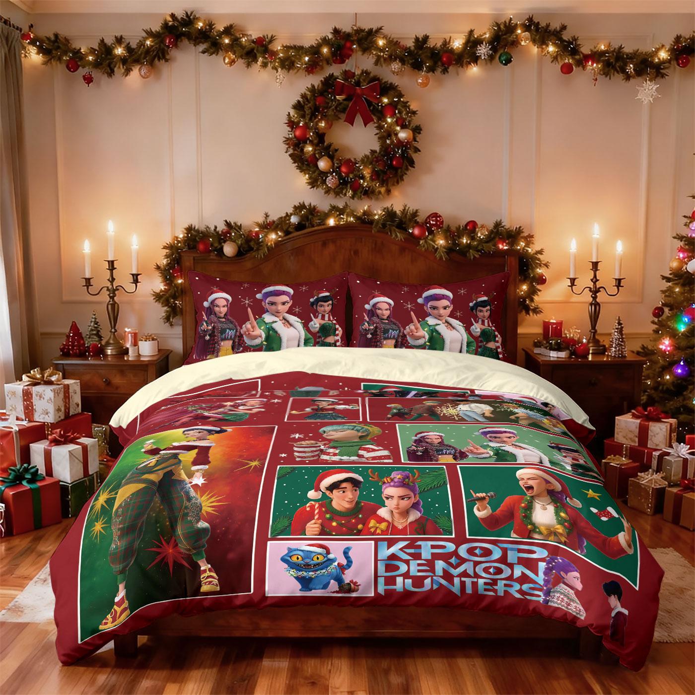 Набор из 3 предметов K-Pop Demon Hunters с принтом, пуховое одеяло без наполнителя, многоразмерное украшение для постельного белья, мягкое и можно стирать в машине 135x200cm-EU-Single&set