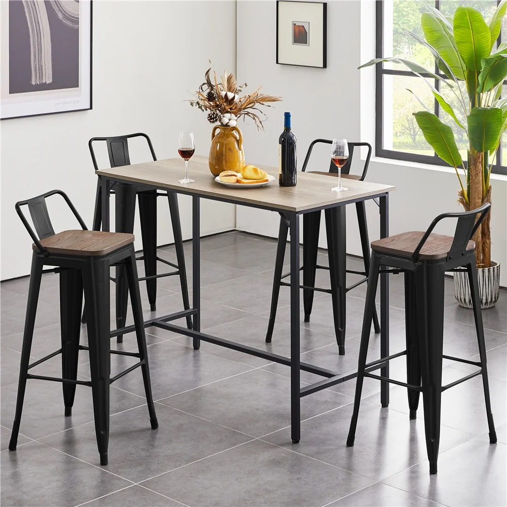 Набор из 4 металлических барных стульев с спинкой, черные барные стулья для кухни, стулья, стулья, барные стулья, аксессуары 4