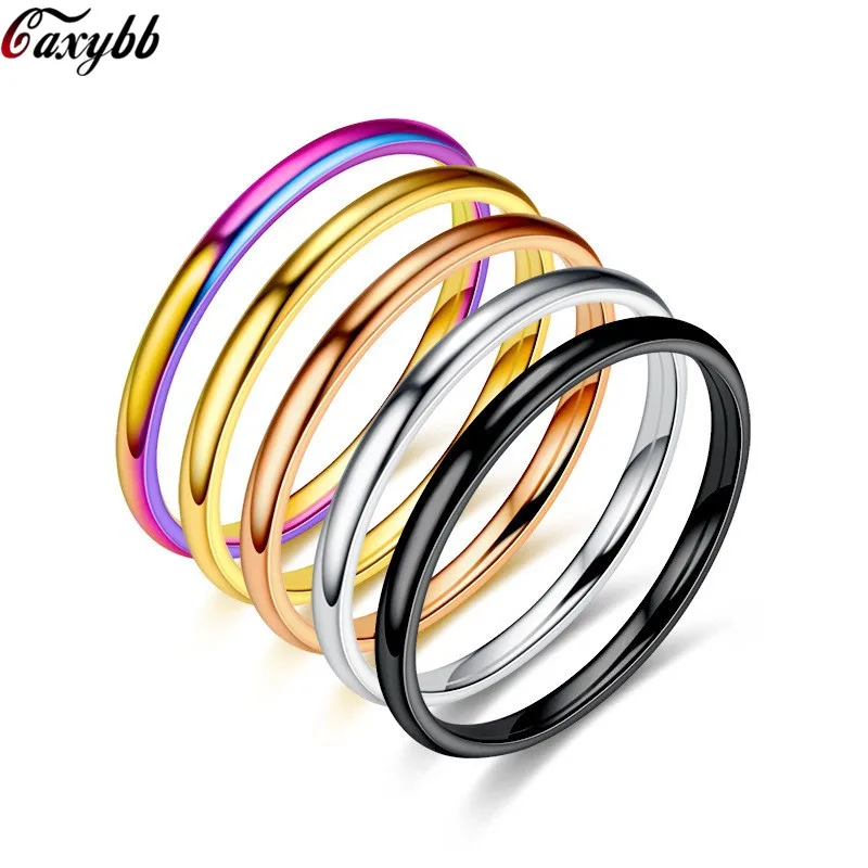 Simple 2MM Thin Titanium Steel 5 Colors Couple Ring Simple Fashion Rose Gold Silver Finger Ring For Women Wedding Party Jewelry