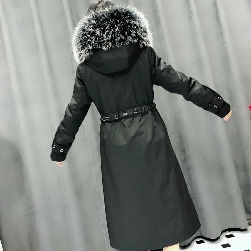 Women parka fur bathrobes real mink fur liner coat with raccoon fur collar female long outerwear detachable hooded jacket