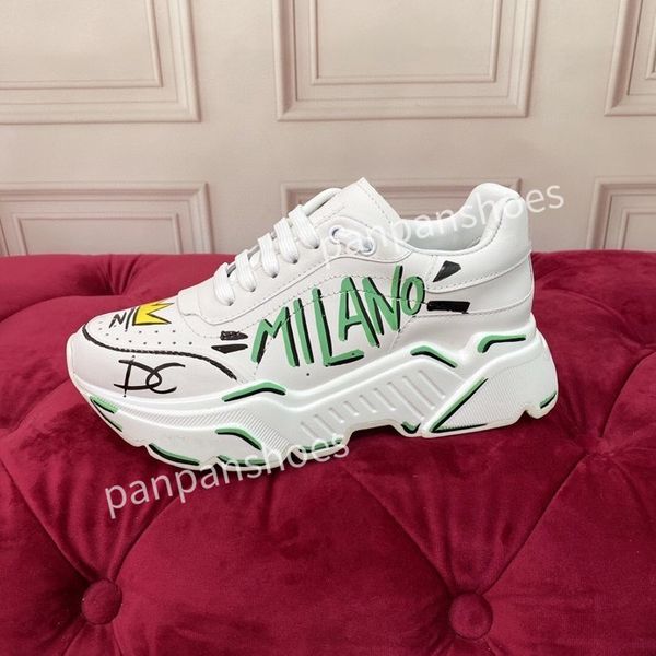 brand men designer leather lace-up sneakers fashion lady flat running letters shoes platform sneaker, Black