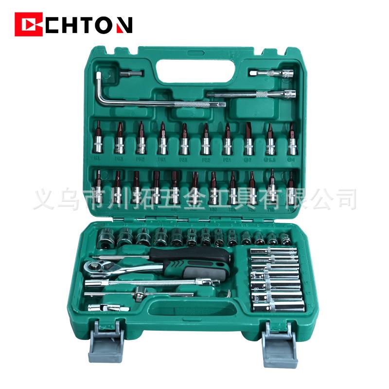 Набор из 54 предметов: зеленый гаечный ключ с храповым механизмом на 72 зуба и набор торцевых головок S2 для ремонта дома и автомобиля