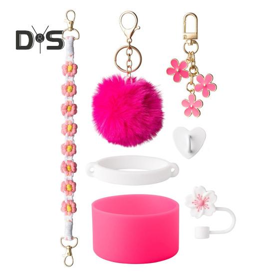 Набор из 7 аксессуаров для стаканов объемом 30/40 унций, силиконовая ручка, ремешок, чехол для ботинка, брелок, подвески, не содержащие бисфенол-А, многоразовые декоративные подарки на Рождество розы красного
