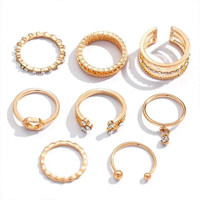 Набор из 8 колец из цинкового сплава, женские винтажные кольца с резными кристаллами на костяшке пальца, богемные украшения золотой