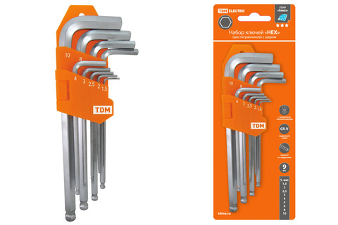 Набор имбусовых (шестигранных) ключей, предметов в наборе: 9шт., CrV, ключи: имбусовые - 9шт., блистер, TDM (SQ1020-0104)