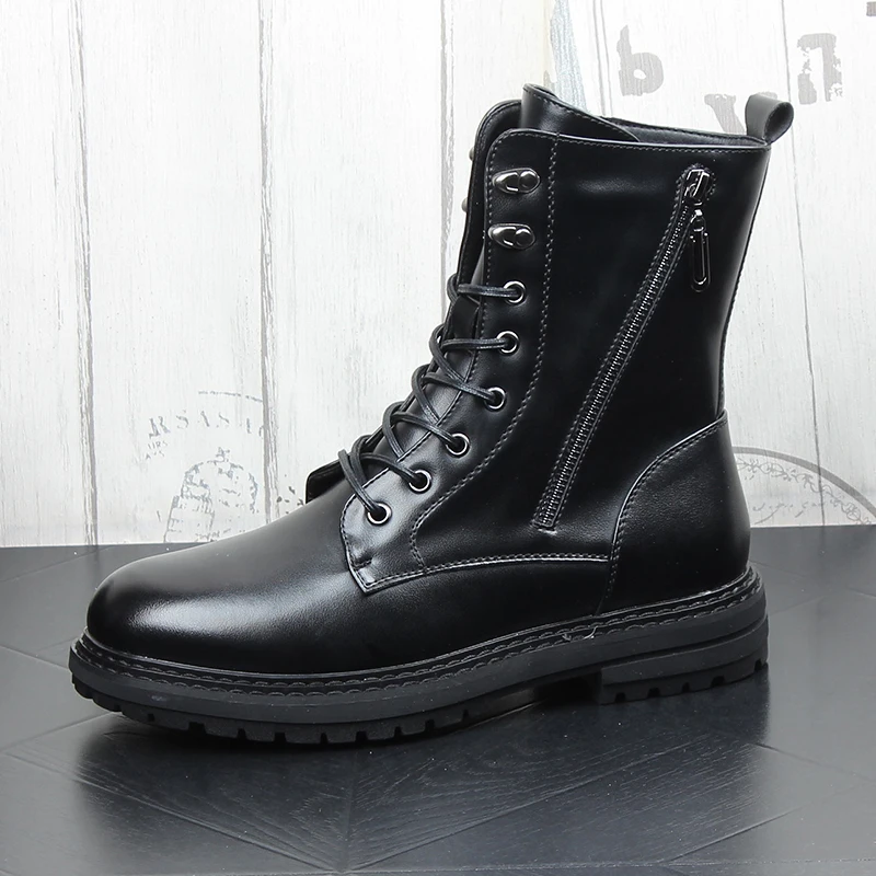 Мужские повседневные мотоциклетные ботинки в стиле панк, черные ботинки из натуральной кожи на платформе, высокие ковбойские ботинки, весна-осень