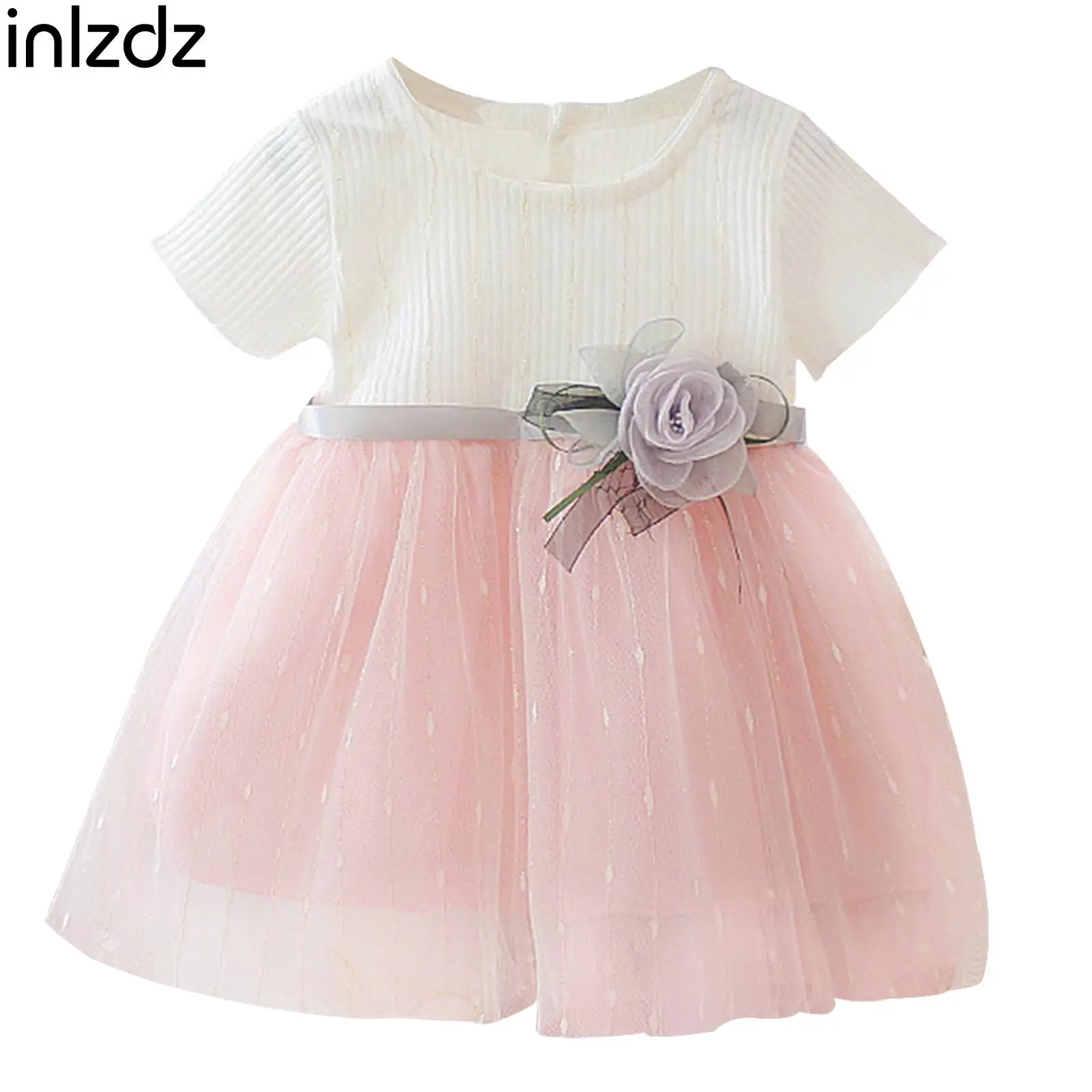 Милое Сетчатое платье-пачка для девочек, платье принцессы с цветком розы, Тюлевая одежда с коротким рукавом, детское платье на день рождения...