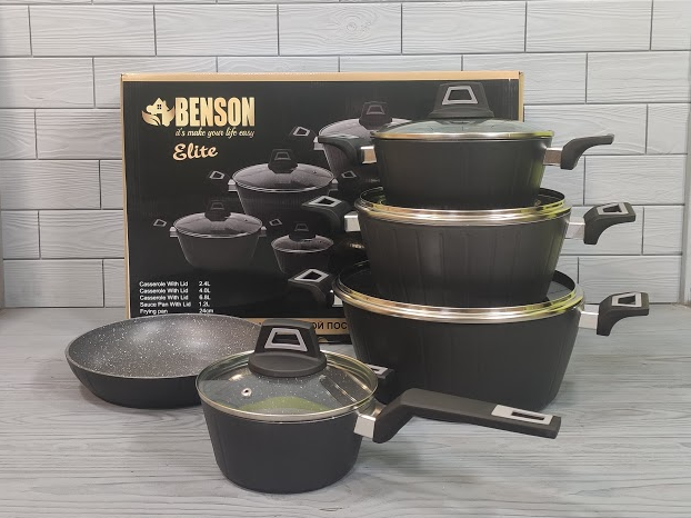 Посуда Benson BN-343 имеет индукционное дно, что делает их современными.