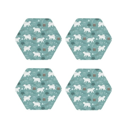 Yiaed whiter Snow bear Print Print Leather Coasters for Drinks - Cup Coasters Coffee Table Kitchen Table Bar Home & Office Gifts Handmade Drink Coasters-Hexagon