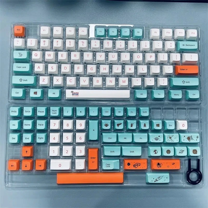 Набор клавиш Happy Planet Dye Sub XDA V2, толстая клавиатура PBT для клавиатуры Gh60, покер 87 Tkl 104 Ansi Xd64 Bm60 Xd68 Xd84 Xd96, оранжевый, голубой