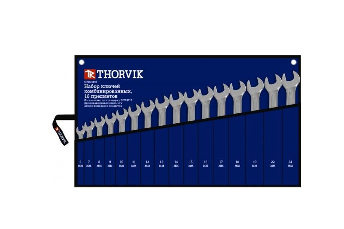 Набор ключей комбинированных, предметов в наборе: 16шт., Cr-V, сумка, Thorvik CWS0016 (52048), CWS0016