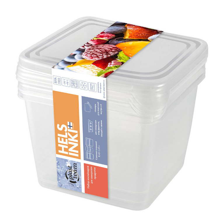 Набор контейнеров для заморозки продуктов Plast Team "Frozen",3 шт x 0,75л,115х115х110мм