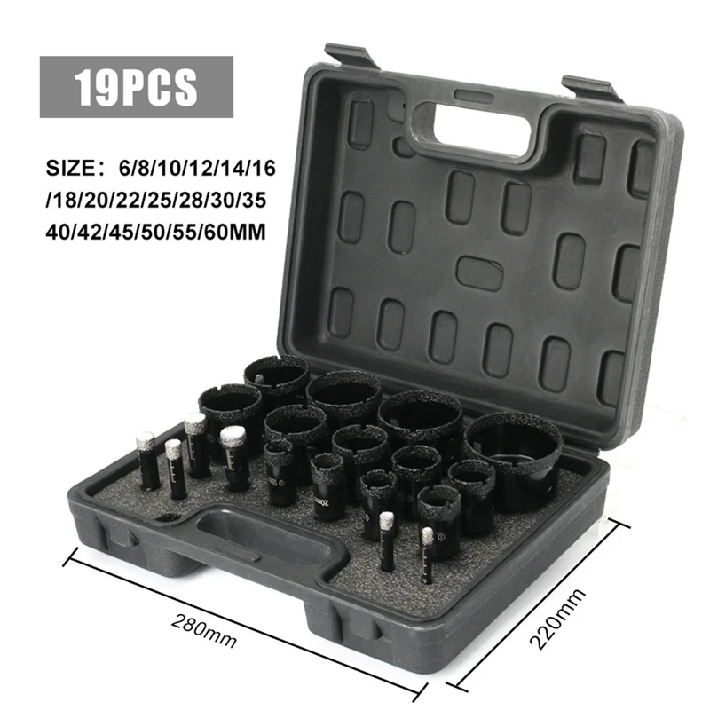 Набор корончатых сверел для гранита, плитки, 19 шт., 6-60 мм, инструменты для керамической и гранитной плитки
