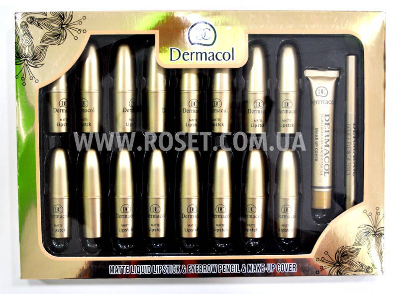 Набор косметики Dermacol 18 pcs – liquid lipstick, eyebrow pensil, make-up cover, представляет собой 16 оттенков губной помады, карандаша для бровей и тональный крем. Мягкий карандаш для бровей, со щеточкой - eyebrow pensil Dermacol, поможет придать правильную форму вашим бровям, прорисовав и выделив линию бровей, обеспечив их желаемым оттенком и формой, а также ухоженным внешним видом.