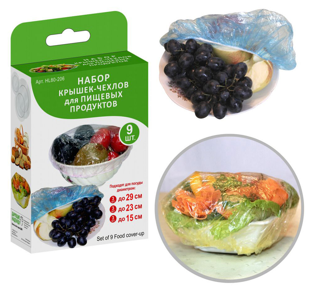 Полиэтиленовые крышки-чехлы с резинкой предназначены для защиты пищевых продуктов от заветривания, загрязнения, посторонних запахов и от насекомых при нахождении продуктов на открытом воздухе. Сохранят свежесть и аппетитный внешний вид. Они легко снимаются и одеваются, закрепляются на тарелке за счет резинки, которая обеспечивает герметичность. Крышки-чехлы имеют три размера, что позволяет их использовать на различных емкостях: тарелках, салатницах, кувшинах, банках и т.д. Подходят для посуды диаметром: 3 шт - до 40 см, 3 шт - до 22 см, 3шт - до 16 см.