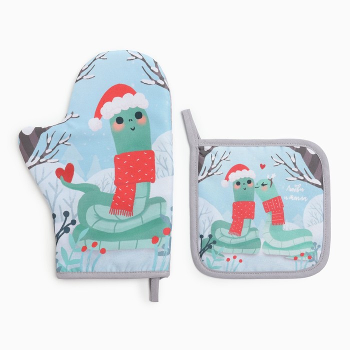 Набор кухонный Доляна "Любви и тепла": прихватка 17х17 см, варежка-прихватка 20х28 см, 35% хлопок