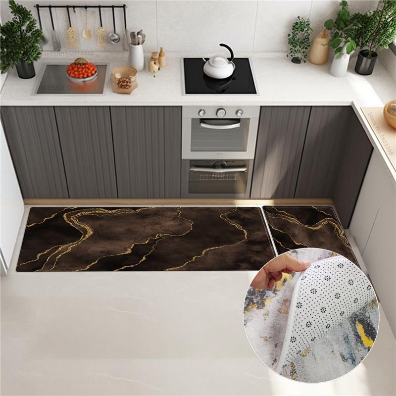 Набор кухонных ковриков с абстрактным принтом, стильный модный напольный коврик, бархатный нескользящий коврик для ванной комнаты, кофейный, фиолетовый, синий, зеленый, красный 50x160cm 1pcs