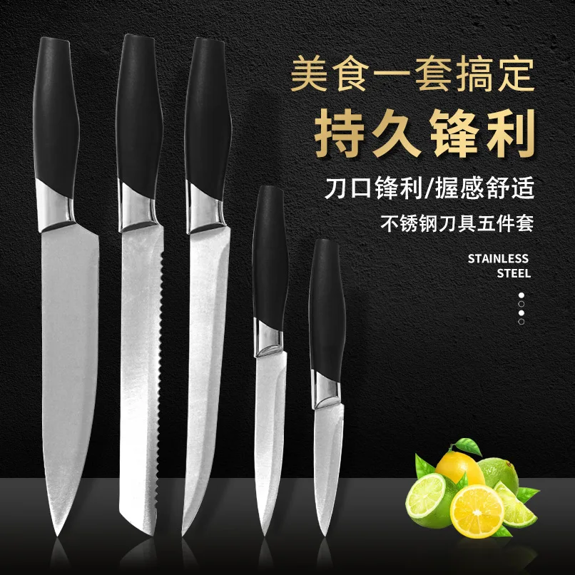 Набор кухонных ножей из нержавеющей стали, 5 предметов, шеф-повар, Мясницкий бытовой нож для чистки, полный набор ножей, кухонный набор ножей, ножи