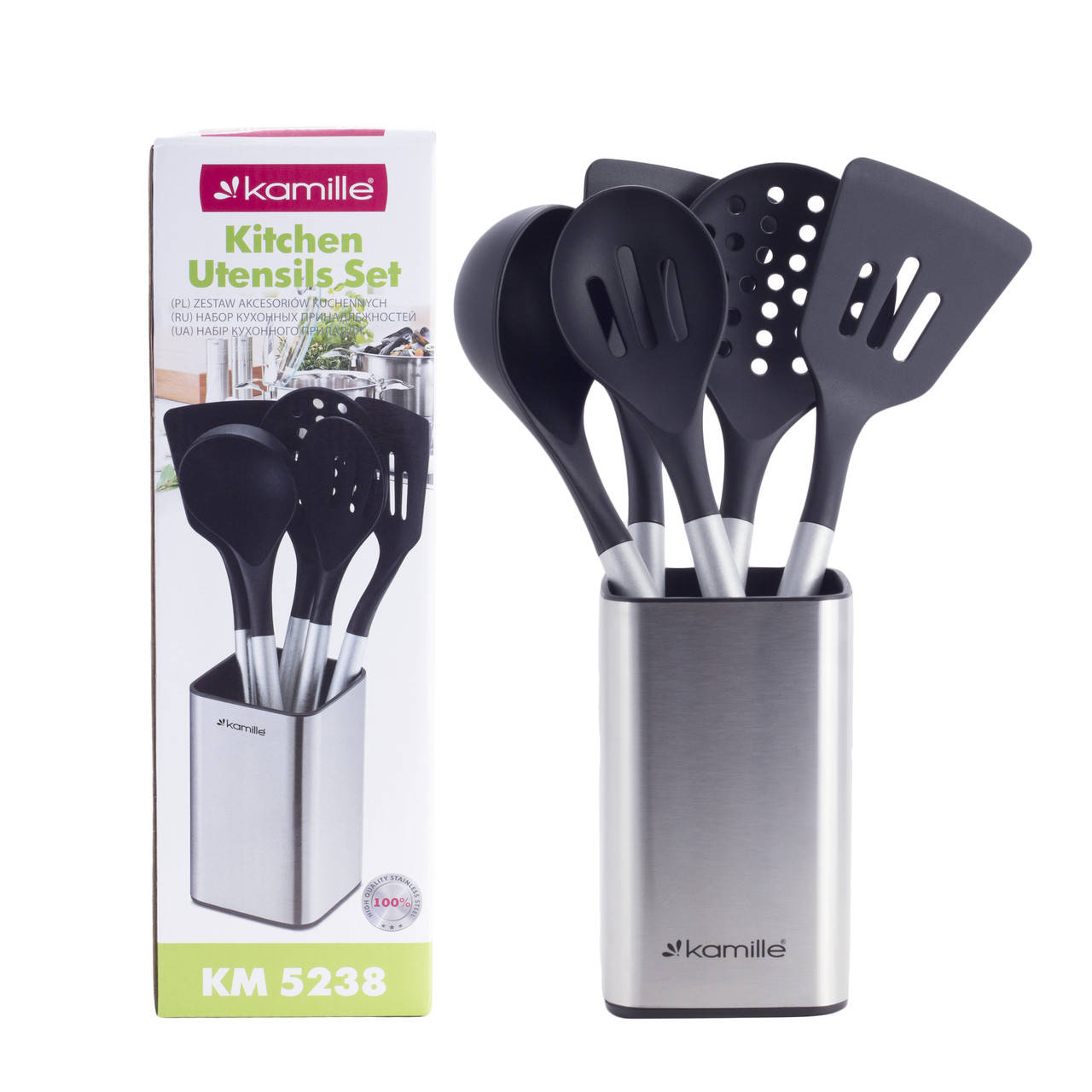 Кухонные принадлежности Kamille – это надежность, практичность и неповторимый дизайн. Кухонные принадлежности выполнены из высококачественной нержавеющей стали с применением современных технологий производства и абсолютно безопасны для здоровья человека.