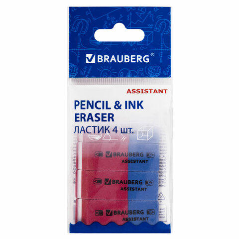 Набор ластиков Brauberg "Assistant 80" 4 шт., 41х14х8 мм красно-синие,прямоугольные,скошенные края