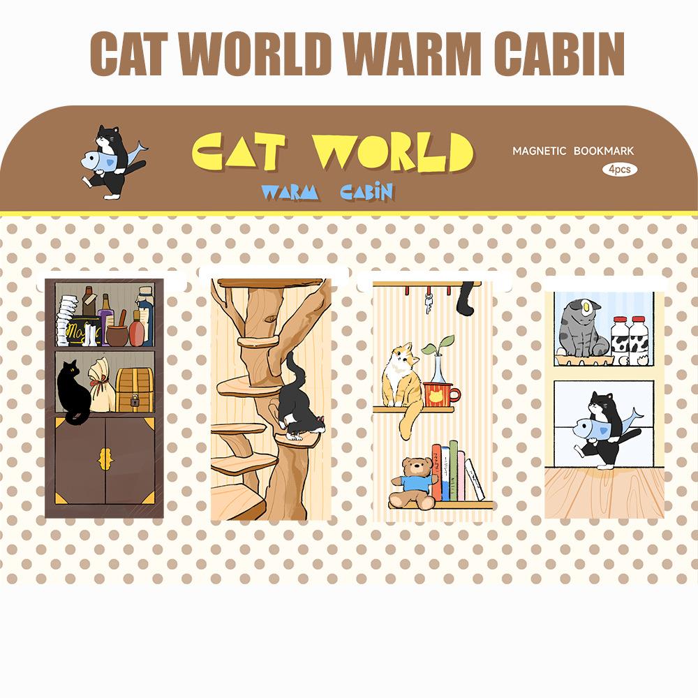 Набор магнитных закладок Cat World, 4 шт., милые закладки с мультяшным дизайном кошек, уникальный канцелярский подарок для чтения