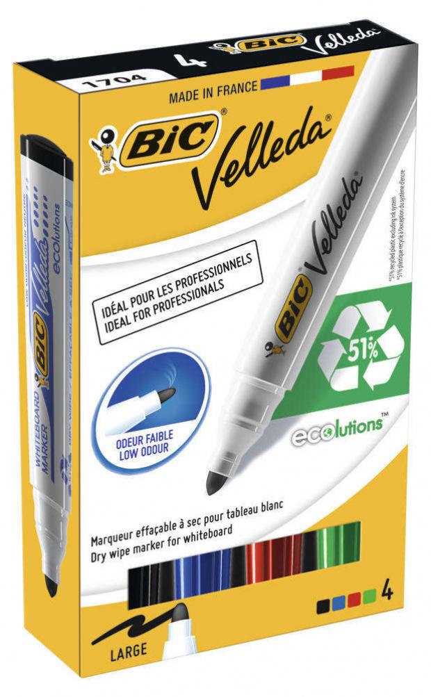 Набор маркеров для досок Bic Ecolutions Velleda быстросохнущие, 4 шт