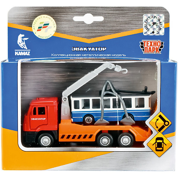 Набор машинок Технопарк Kamaz "Эвакуатор и троллейбус", инерционные