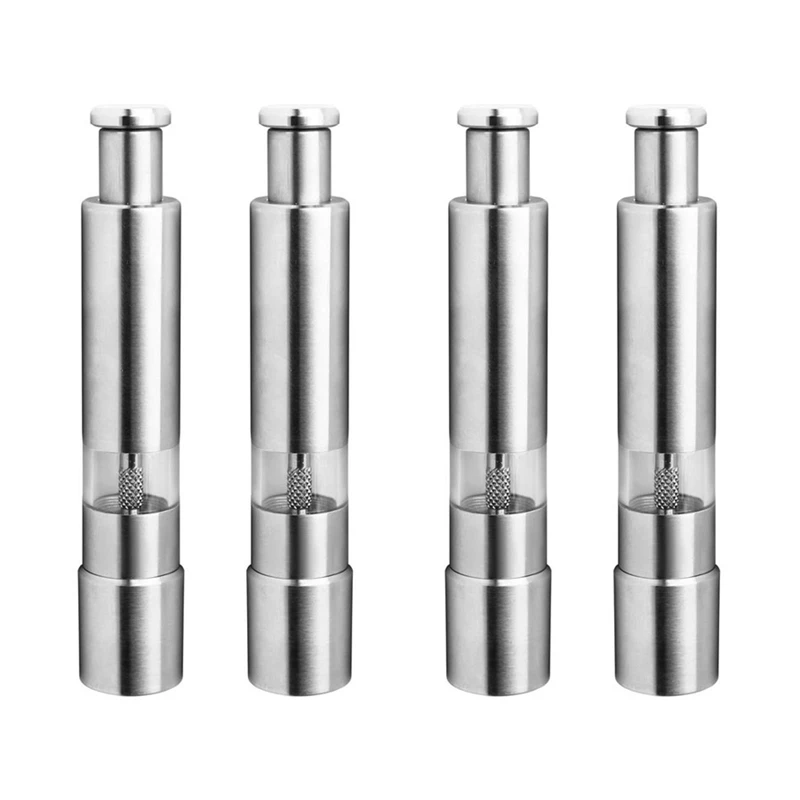 Набор мельниц для соли и перца, прочная мельница из нержавеющей стали для работы одной рукой, 4 упаковки