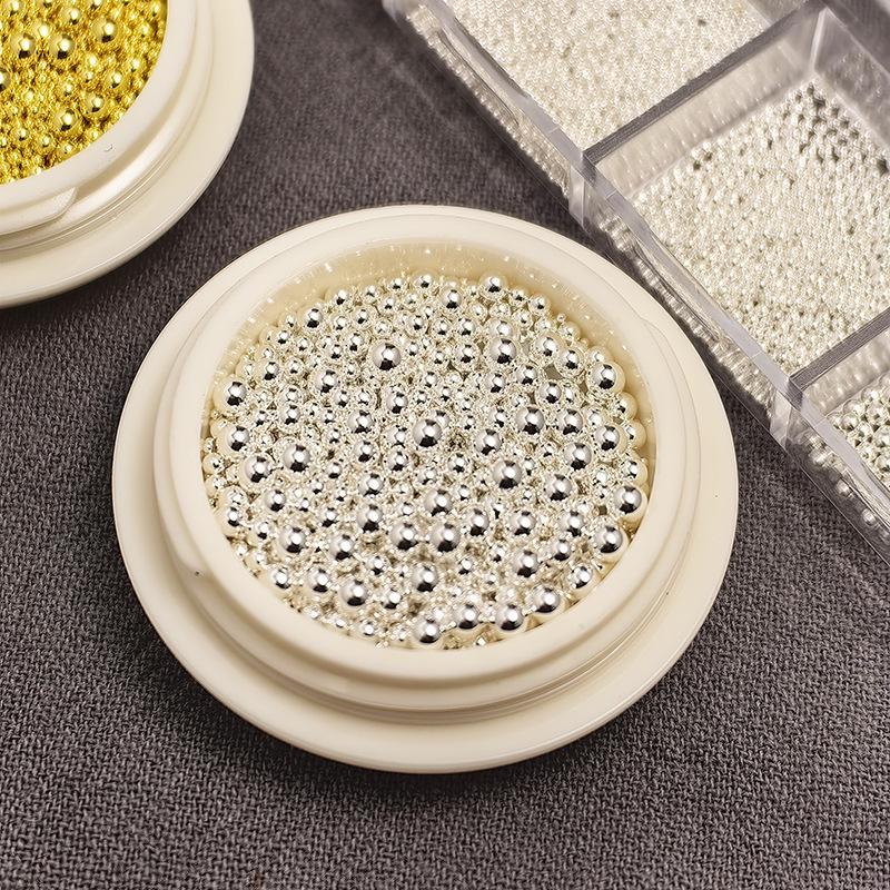 Набор мини-стальных бусин золотого и серебряного цвета для дизайна ногтей - коробка из 12 ячеек с жемчужными украшениями для ногтей в стиле знаменитостей