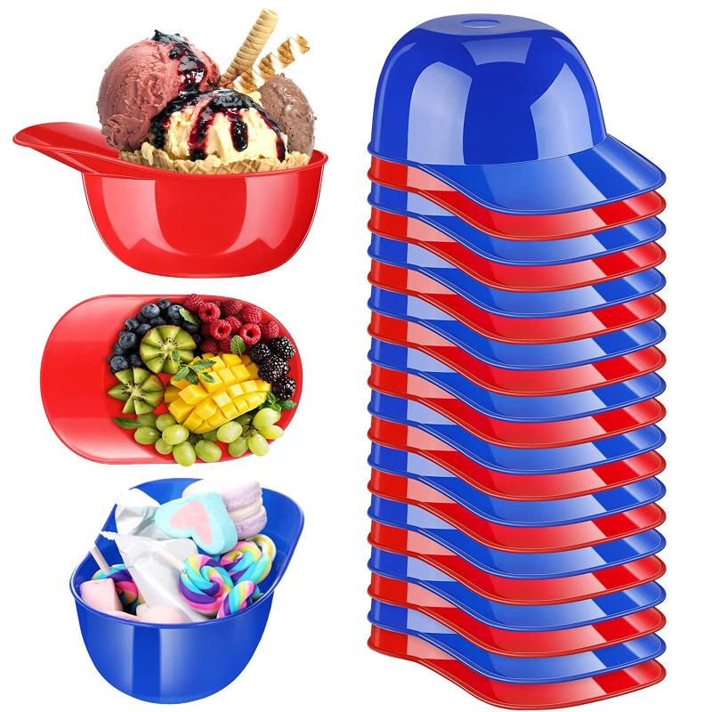 Набор мисок для мороженого, бейсбольная кепка, красочные многоразовые многофункциональные мини-миски для десерта, вечерние 10 red + 10 dark blue