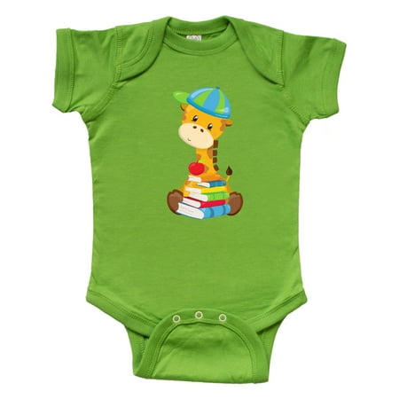 Inktastic Giraffe Going To School Giraffe With Books Gift Baby Boy or Baby Girl Bodysuit