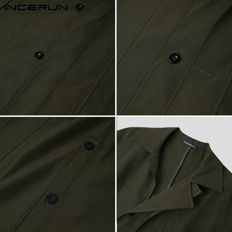 Men Cloak Coats Solid Color Button Up 2021 Turn Down Collar Poncho Fashion Long Trench Streetwear Windproof Mens Jackets INCERUN