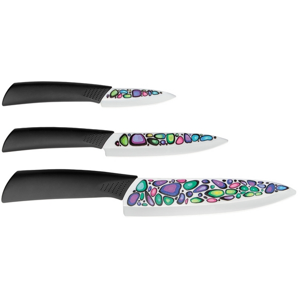 Примечание: | - материал клинка: циркониевая керамика белого цвета с нанесением уникального рисунка на лезвие ножа;-твердость 8.6 по шкале Mooca (Mohc) - 87 HRC;MIKADZO Imari – это ножи из циркониевой керамики. Назначение: предназначены для ежедневного нарезания фруктов, овощей и мяса без костей. Основные особенности: - Ножи MIKADZO Imari обладают высокой степенью твердости до 8.6 по шкале Мооса (Mohs), что приравнивается к 87 HRC. -Химическая нейтральность (не переносят ионы металла в пищу, не разрушаются от кислот и жиров в овощах и фруктах, никогда не заржавеют). -Продукты, которые вы нарезаете керамическим ножом, не вступают в химическую реакцию, не окисляются и сохраняют все свои полезные свойства. -Ножи MIKADZO Imari из циркониевой керамики очень острые и в несколько раз дольше держат заводскую заточку, чем стальные ножи. - Керамические ножи MIKADZO из серии Imari достаточно пластичные. они обладают повышенной ударопрочностью и устойчивостью режущей кромки, что гарантирует их эффективное и комфортное использование в течение всего срока службы - Ручка сделана из прорезиненного ABS-пластика, который не скользит в руках. Отличительные особенности данных моделей коллекции Imari: - материал ручки: прорезиненный пластик |