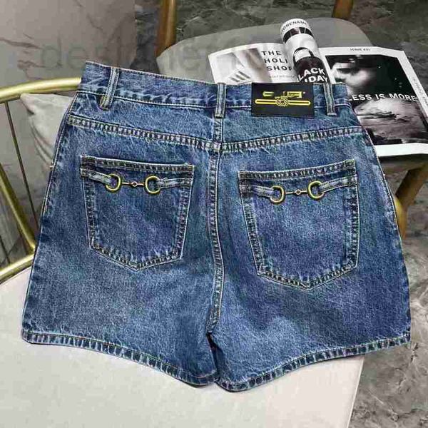 high version 1 1 nanyou g new high waist thin metal double button pocket wide leg denim shorts women's summer, Blue