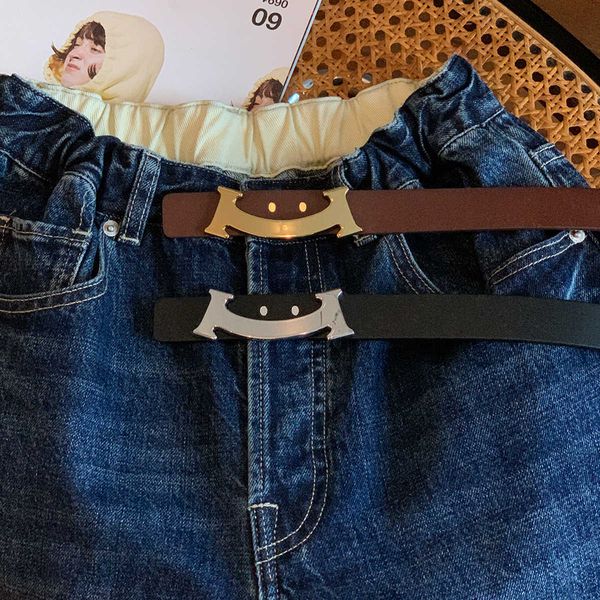 smiling face belt women's 2021 new versatile leisure temperament plant blend real cowhide letter trouser, Black;brown