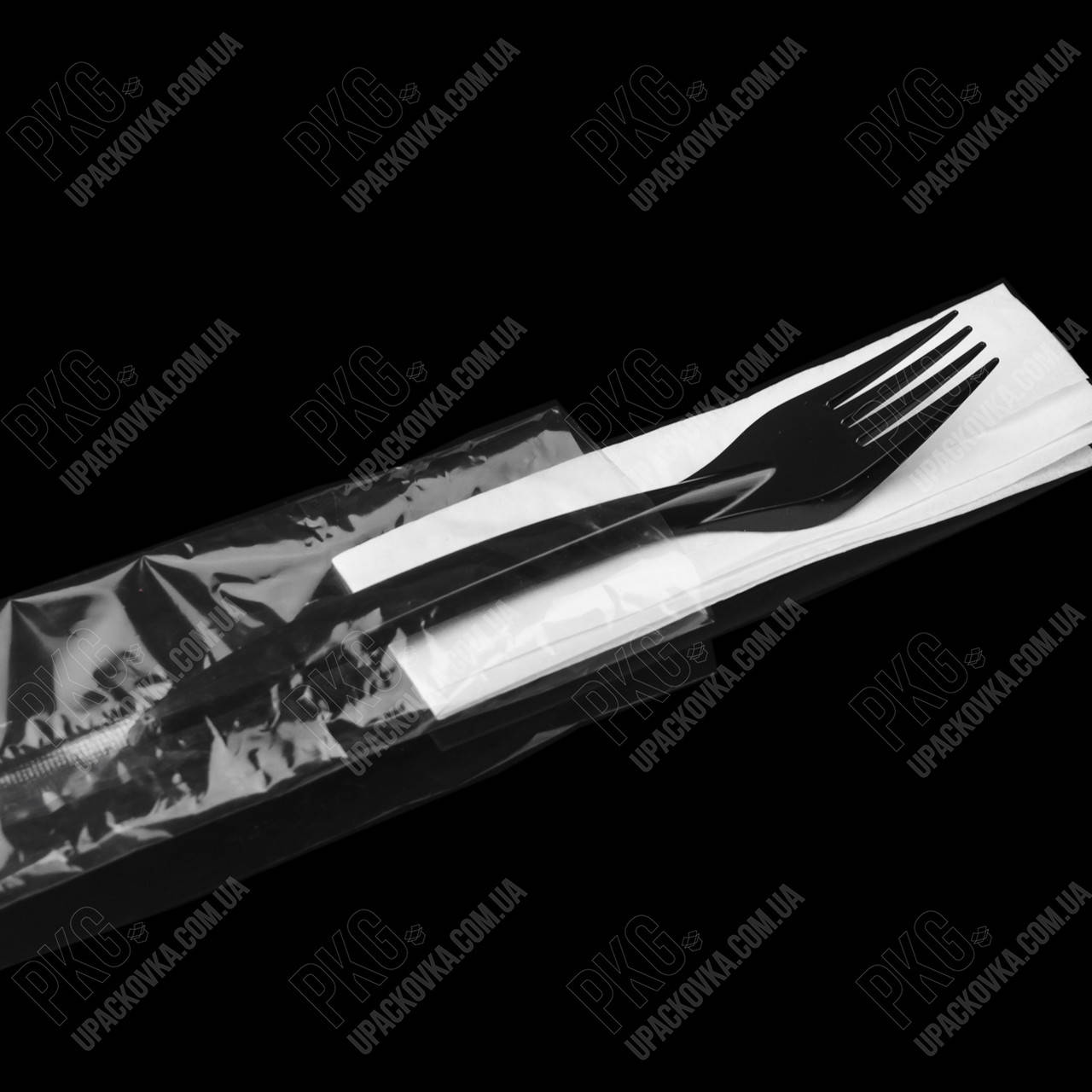 Набор одноразовой посуды (Вилка, салфетка) ЧЕРНЫЙ 250 шт/ящ. PL