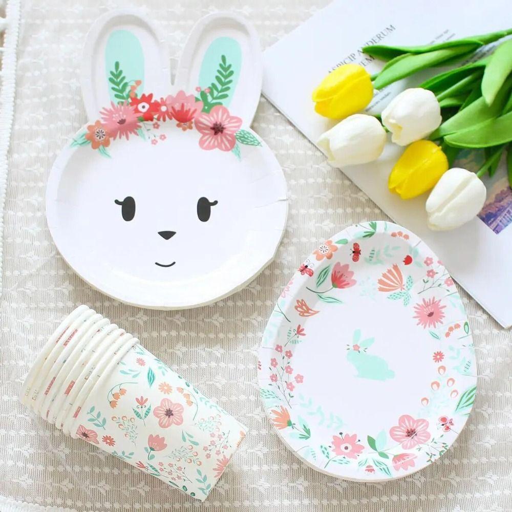 Набор одноразовой посуды в виде бумажного кролика, тарелка в форме яйца, набор столовых приборов для вечеринки на день рождения