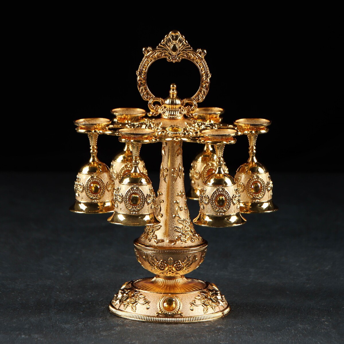 Набор питьевой на подставке «Марена»: 6 рюмок 30 мл, цвет золотой.