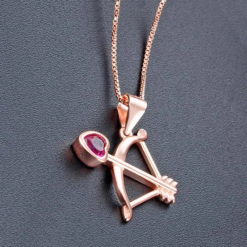 925 Sterling Silver Rose Gold Color Necklace Heart Red Zircon Pendant Necklaces For Wonen Romantic Wedding Party Jewelry