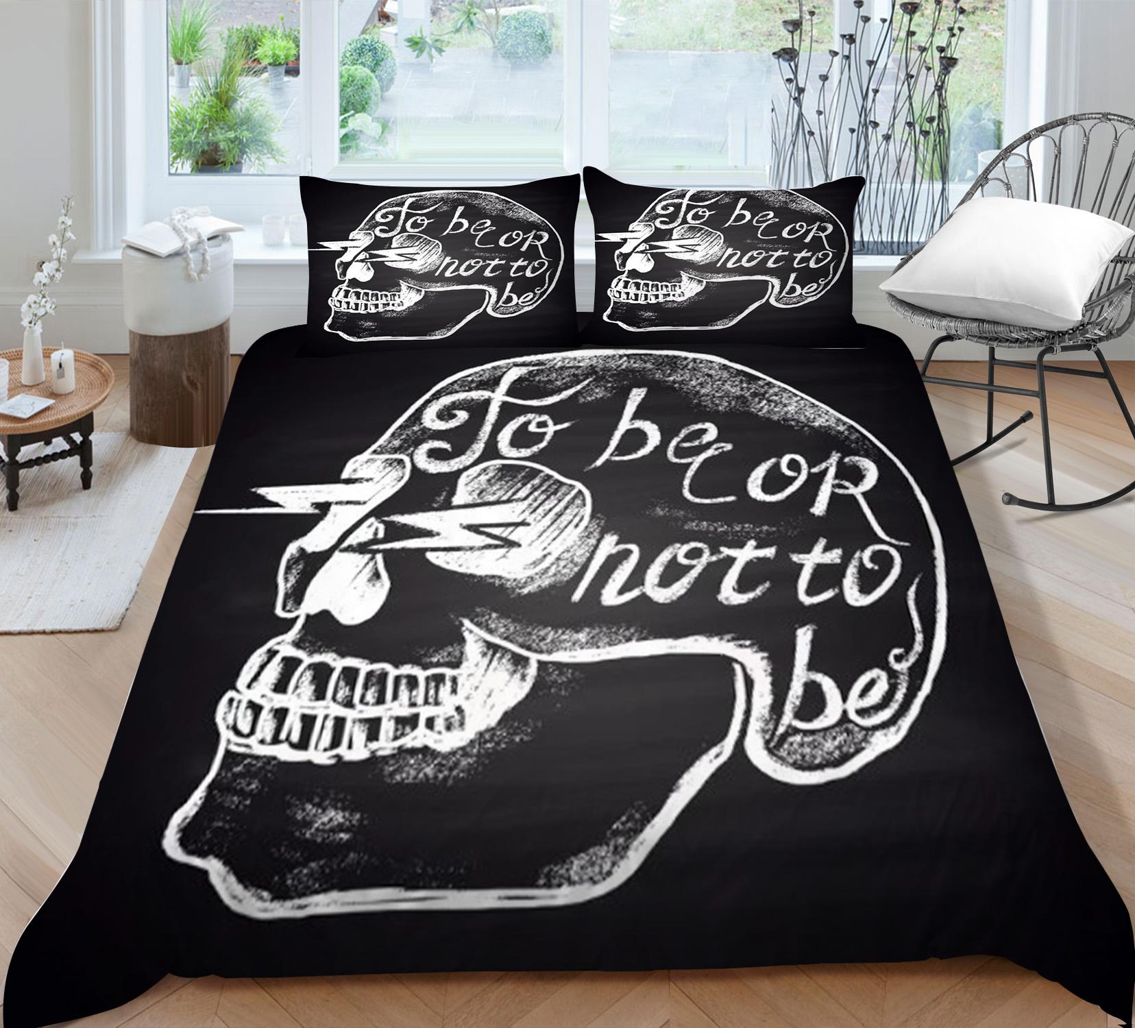 Набор пододеяльников с принтом черепа, ужасный стиль, постельное белье, костюм для мальчиков, один размер, пододеяльник, костюм, черный фон, домашнее постельное белье EU Single 135x200cm