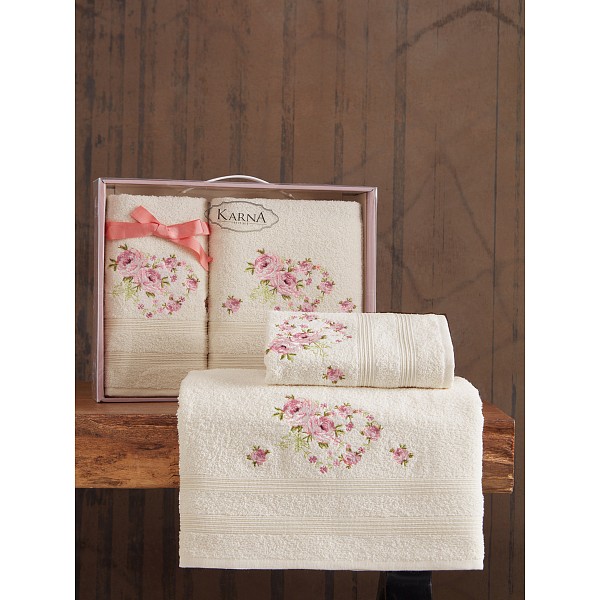 Компоненты, входящие в комплект: | Полотенце:50x90, 1 шт, кремовый70x140, 1 шт, кремовый |
