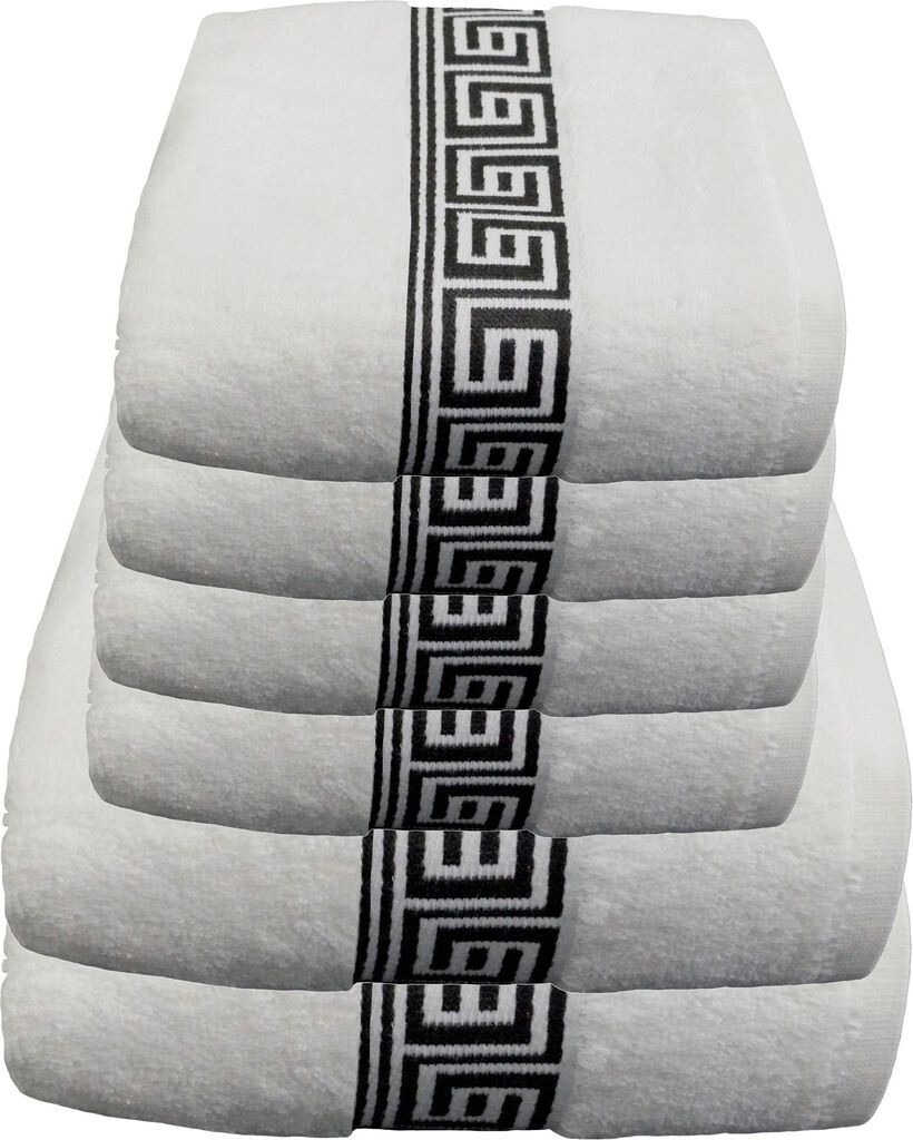 Набор полотенец Julie Julsen 600 г/м² БЕЛЫЙ-ЧЕРНЫЙ, 6 штук: 2 банных полотенца и 4 полотенца для рук.