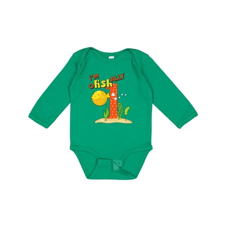 Inktastic I m O-Fish-Ally One- Cute Puffer Fish First Birthday Gift Baby Boy or Baby Girl Long Sleeve Bodysuit