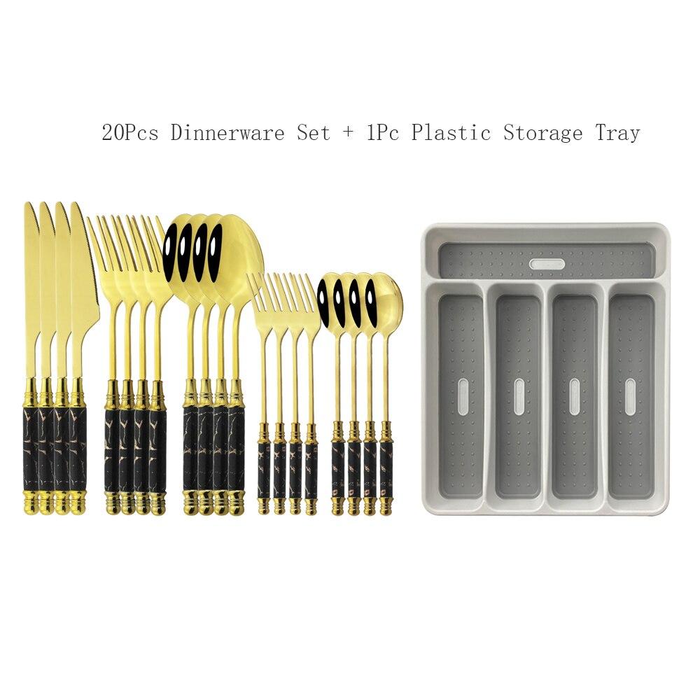 Набор посуды с керамической ручкой, 20 шт., набор золотых вилок, ложек, ножей, набор столовых приборов из нержавеющей стали, можно мыть в посудомоечной машине, набор столовых приборов золотой/чёрный