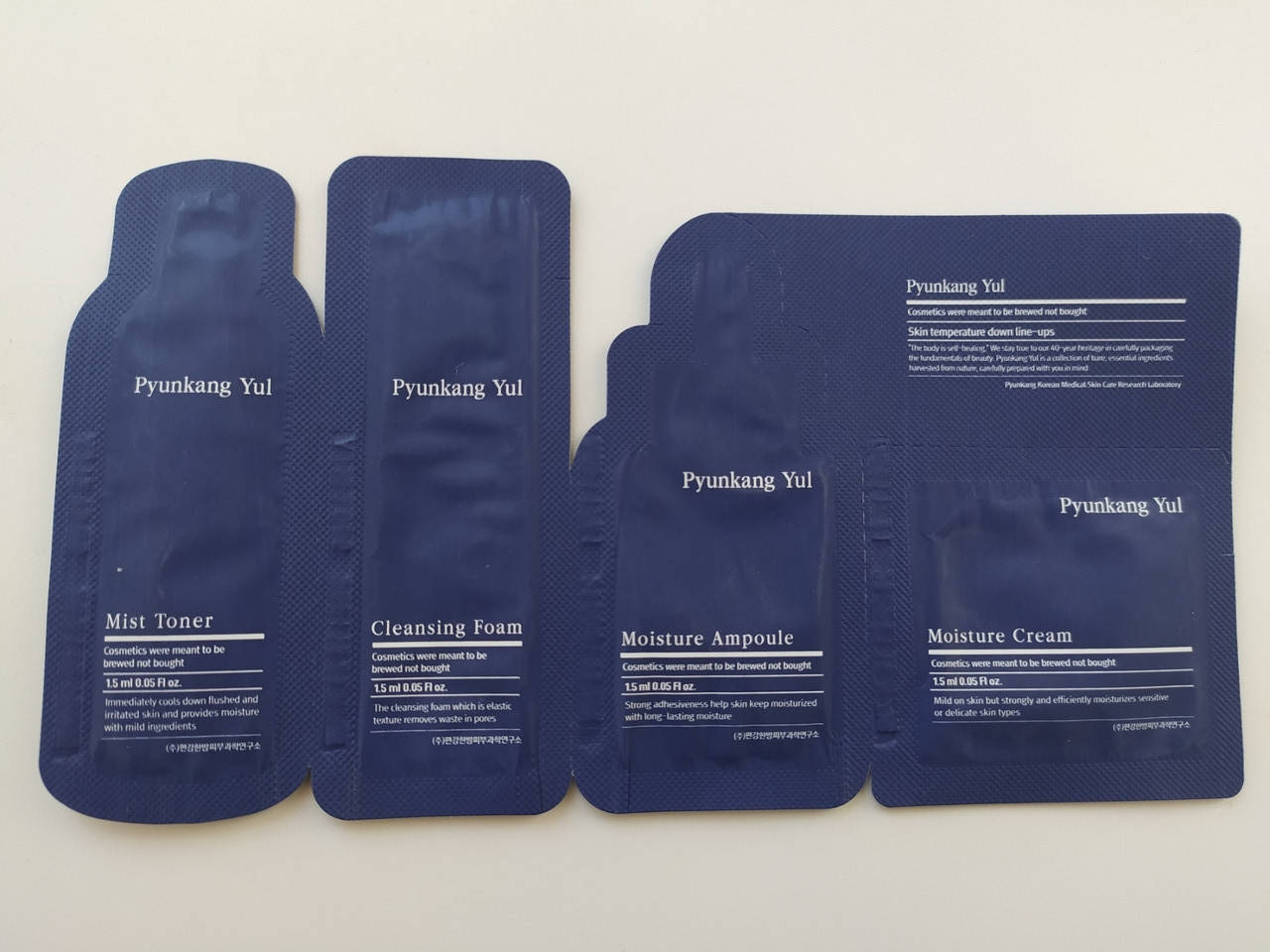 Состав набора: Тонер-мист с экстрактом коптиса — Pyunkang Yul Mist Toner, 1.5ml + Пенка для умывания — Pyunkang Yul Cleansing Foam, 1.5ml + Увлажняющая ампула — Pyunkang Yul Moisture Ampoule, 1.5ml + Увлажняющий крем — Pyunkang Yul Moisture Cream, 1.5ml.