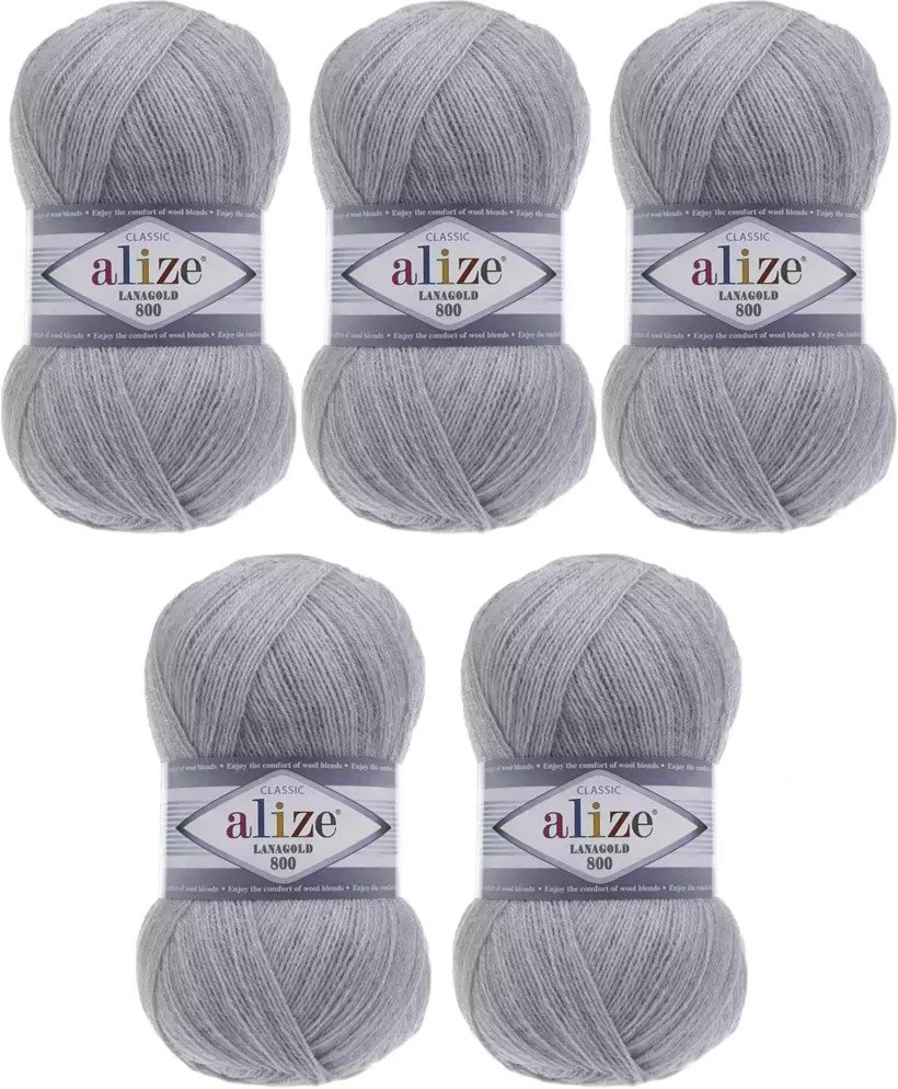 Набор пряжи для вязания Alize Lanagold 800 684 (800 м, пепельный, 5 мотков)