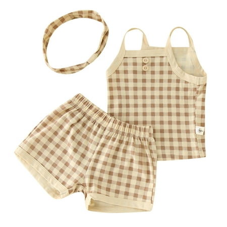 XINSHIDE Newborn Infant Baby Girls Boys Sleeveless Plaid Strap Vest Tshirt Tops Shorts Headband 3Pcs Outfits Set Baby Girl Clothes