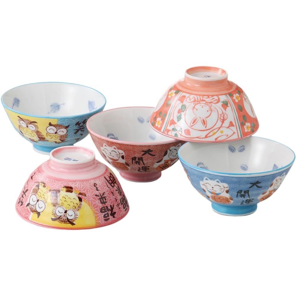 Набор риса Диаметр 11 x Высота Счастливый внутри и Набор пиал для риса Пиала для риса Мино Сделано в Японии Ale-net Пиалы, 5, 6 см, Снаружи, 5, Набор, Фарфор,