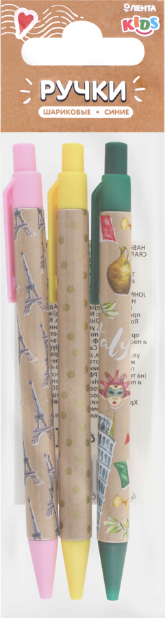 Набор ручек ЛЕНТА KIDS шариковых Craft автоматических, синий цвет 3шт